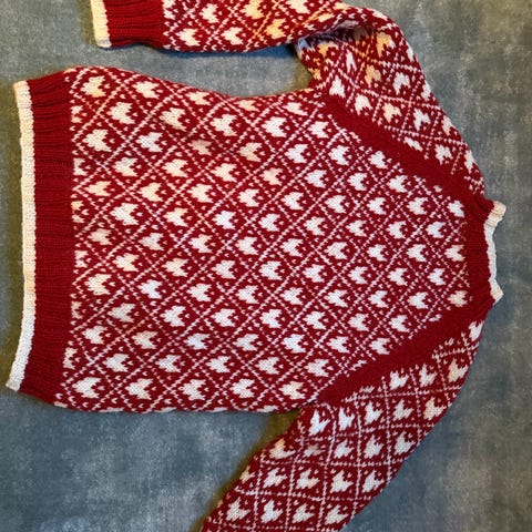 Som ny. Kun brukt en gang. Strikket av meg selv.