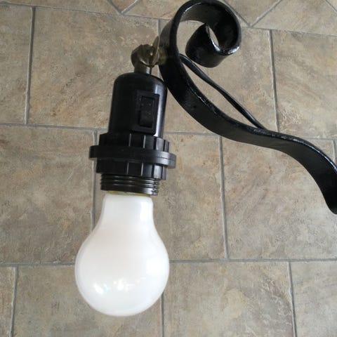 pen karakteristisk stålampe i mørk flettet kurv