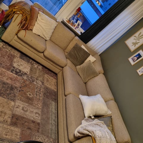 Grå hjørnesofa brukt gis bort. Må hentes. Står klar.