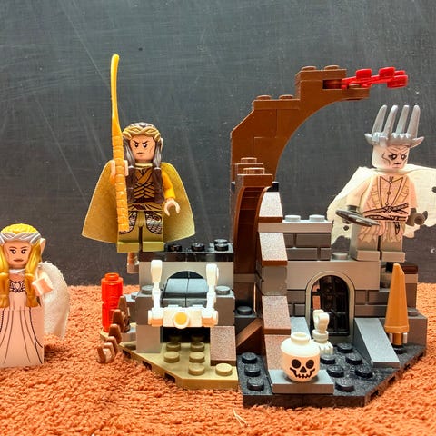 Bygget én gang, demontert og lagt i poser. Eske og instruksjoner medfølger.