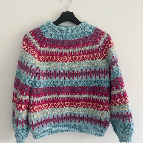 Off-shoulder genser fra samsøe&samsøe, med tjukk strikk rundt skuldrene. Veldig lite brukt.