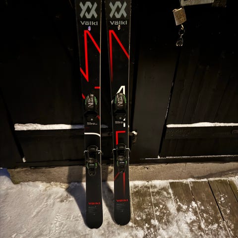 Selger Völkl Cosmo twintip ski i lengde 161 cm med bindinger, samt Tecnica Phoenix 90 UltraFit alpinstøvler i str. 38/39.