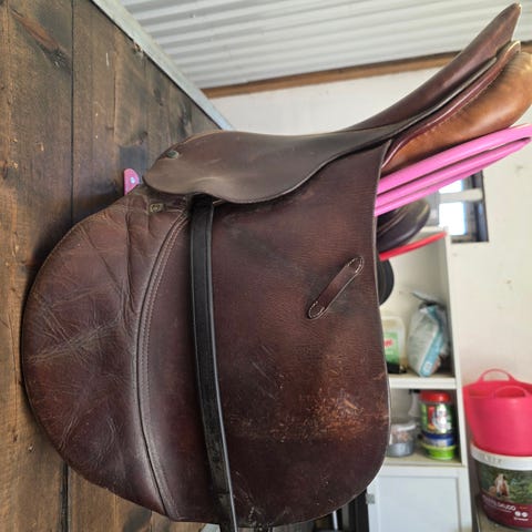 Salsett i lær. Inkluderer sal, stigbøylar, gjorder og pleieprodukt. Passar til alminneleg bruk innan hestesport.