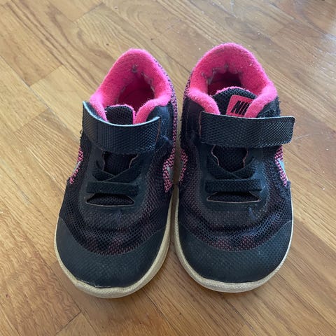 Nike barn sko i størrelse 35, designet for unisex bruk. Skoene har en kombinasjon av farger inkludert svart og rosa, med detaljer som gir støtte og komfort. Egnet for daglig bruk og ulike aktiviteter for barn.