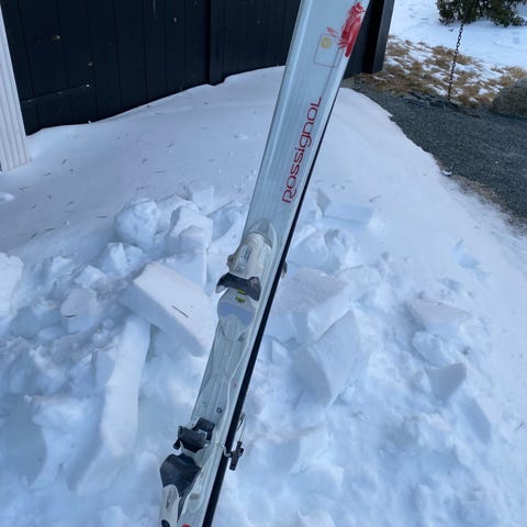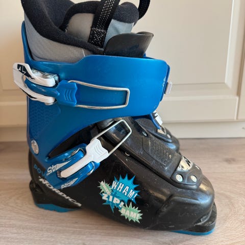 Roxa slalåmsko kjøpt i fjor og brukt en tur i bakken før de ble for små.