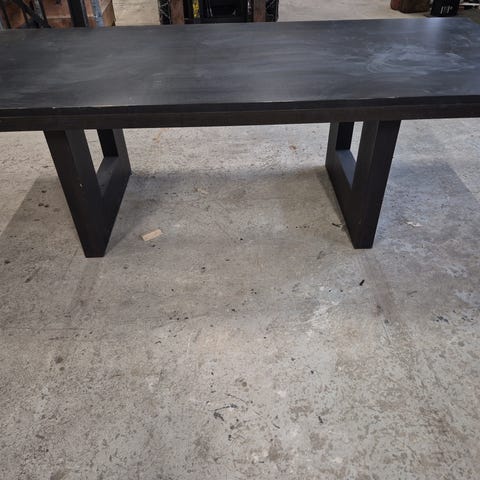 Nobel sofabord fra Fagmøbler med sort metallramme og rund topp. En ripe på bordflaten ellers i helt fin stand. Se bilder for ripe.