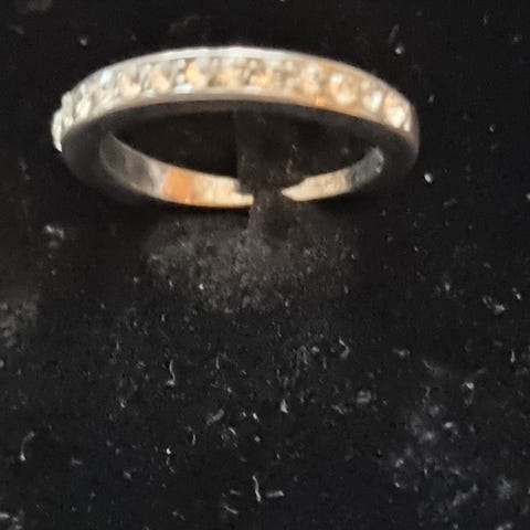Selges uten sertifikat. Diamantene er små og jevnt satt, typisk for denne typen ring.