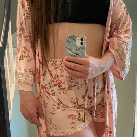 Utrolig deilig og myk dunkåpe med to sett med knapper så den følger magen eller baby i bæresele. Har også brukt den mellom svangerskapene. Varm og god.