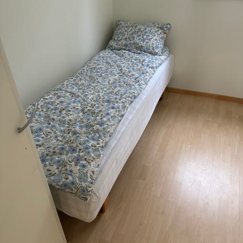Har en stor flekk oppå selve senga, ikke prøvd å vaske det bort, har stått igjen i leiligheten etter forrige eier, overmadrassen er hel og fin, og nyvasket.