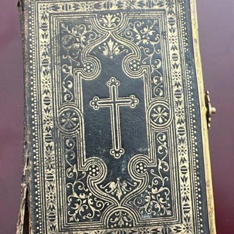 Står ikke årstall, men 1886 er skrevet inn. 782 sider. Gotisk skrift. Gullsnitt og med spenne. Bra strand. SENDER GJERNE