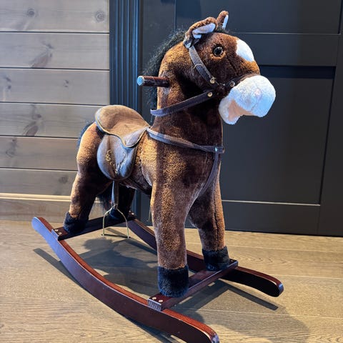 Disney gynghest i brun farge. Laget av mykt materiale med trebunn for gynging. Egnet som leketøy for barn.