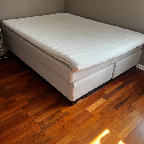 Kontinental seng 180x200 er meget pen og ren seng med overmadrass og Gavl.