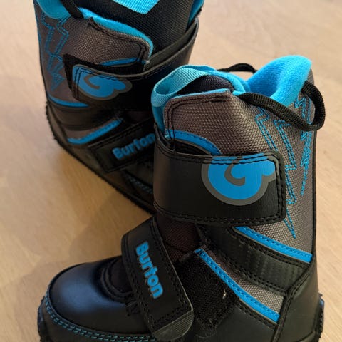 Burton Mini Grom barn vintersko i blå og oransje farger. Skoene har en slitesterk såle med godt grep, egnet for utendørs bruk i vinterforhold. Størrelse 30,5.