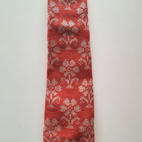 Rødt/burgunderish, silkeslips med hypnotisk sirkelmønster. 100% silke.
