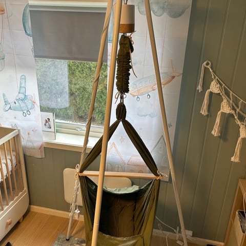 Selger denne brukte sleepy B vuggen. Den er koe annerledes enn bildene. Fikk den igår, kun pakket opp og sjekket att den funker. Så pakket ned igjenn. Da den ble alt for stor hjemme hos oss……