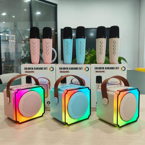 Bluetooth-aktivert karaokesett med et morsomt design og enkel bruk, noe som gjør det perfekt for barn. Det store batteriet gir opptil seks timers kontinuerlig bruk, og deretter lades enheten fullt på mindre enn tre timer.