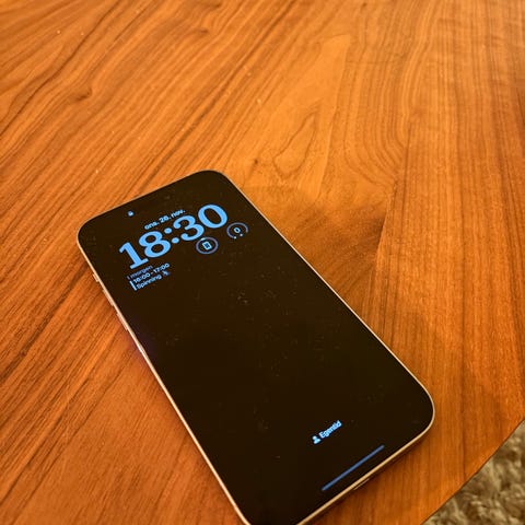 Status: Telefonen er fabrikkinnstilt, fjernet fra iCloud og klar for ny eier.