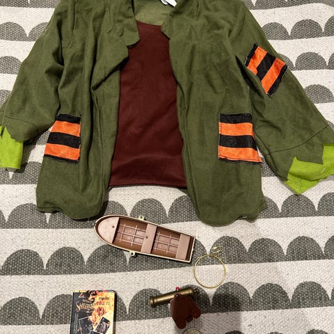 Kaptein Sabeltann kostyme, hatt, flagg og sverd. Pent brukt. Størrelse 3 år i kostymet.