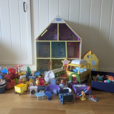 Peppa Gris Wooden Deluxe lekekhus i tre med flere rom og møblerte interiører. Passer for barn og gir mulighet for rollelek med kjente figurer fra Peppa Gris-universet.
