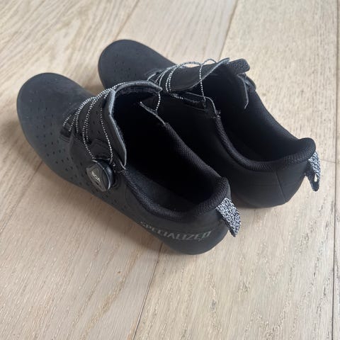 Shimano sykkelsko i størrelse 40 med svart farge. Skoene har en strammesystem for god passform og er designet for bruk med klikkpedaler. Materialet er pustende og egnet for sykling.