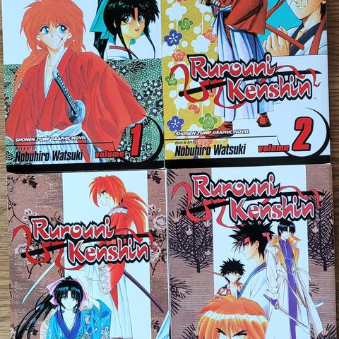 Rumiko Takahashi Ranma 1/2 er en manga serie bestående av flere bind med fargerike omslag. Serien er en japansk tegneserie som kombinerer elementer av action og komedie.