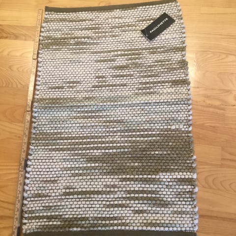 Superfint 100% ullteppe i liten størrelse (90x55). Farge: beige/grå aktig