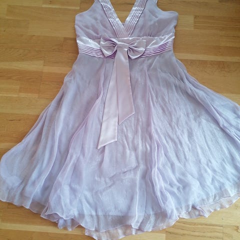 Kjole fra Inwear fra 2000- tallet en gang, tror den aldri ble brukt. Tynt stoff, omslag med knyting bak, rosa tynn underkjole. Lengde til under kneet. Litt Y2K- stil
