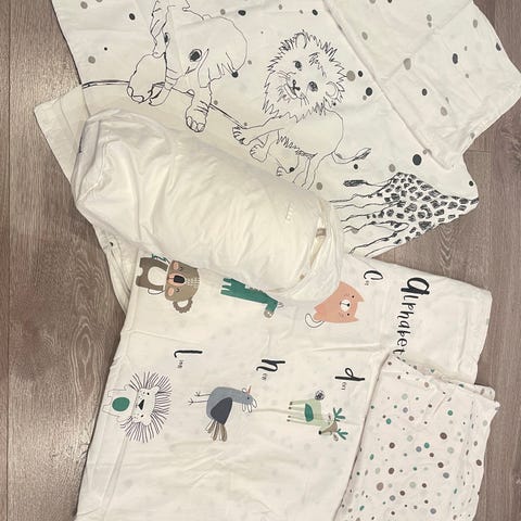 - Hvitt sengesett m/sirkus- og dyremotiv i bomull. Brukt et par ganger. SOLGT