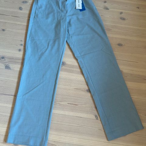 Mid-waist trousers with a regular fit and straight leg. Button and zipper closure at the fly. Elasticated waistband. Side slit pockets on the front. Main material made from a blend of 45% wool and 55%recycled polyester.