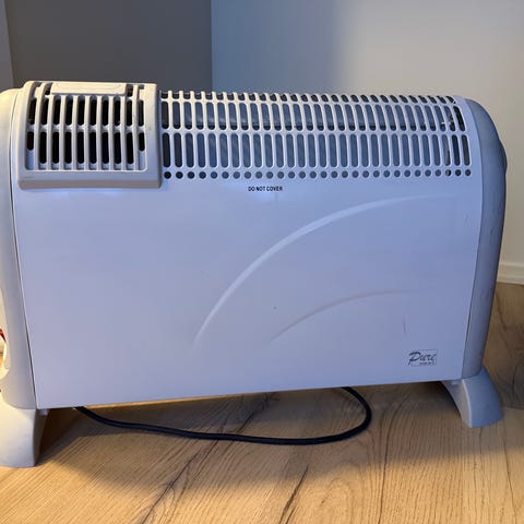 vifteovn i hvit farge med to justerbare innstillinger for varme og vifte. Kompakt design med bærehåndtak for enkel transport. Passer for oppvarming av mindre rom.