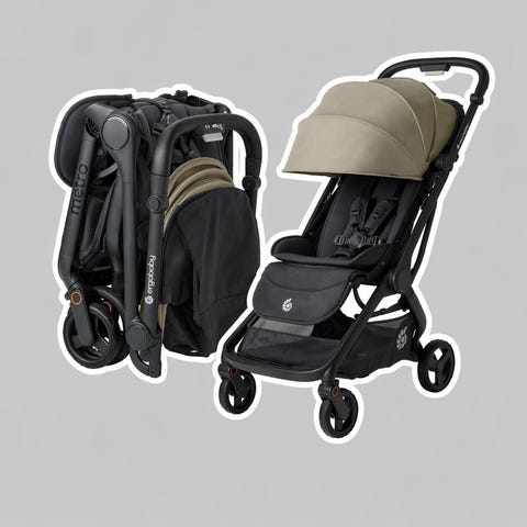 Ergobaby metro+ barnevogn i grå farge. Barnevognen har justerbart sete og solskjerm, fire hjul med svingfunksjon foran, og kurv under setet for oppbevaring.