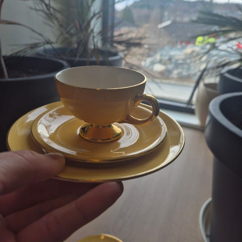 Egersund flint mugge og natt potte selges. Begge er uten skår. Arvet av min farmor for 20 år siden. Muggen og potten har en tynn gullkant. Selges samlet