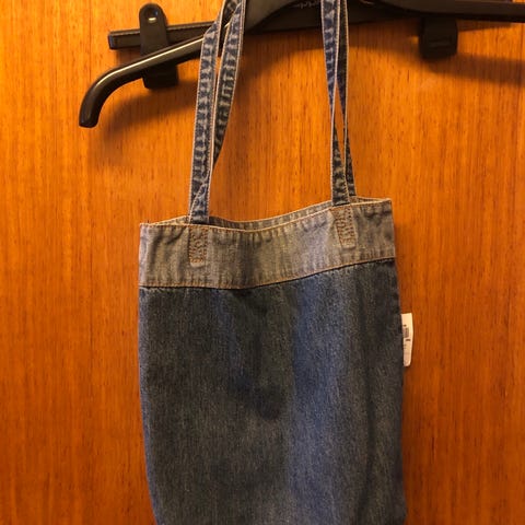 Foret pose til oppbevaring av småsaker. Meget pen utførelse i tynt ullstoff/filt i fargene blått med grønne sidestykker. Innslag av gult og rødt med små biter av kråkesølv. Lukkes med snorer av tvunnet ulltråd. Foret med rød bomullstekstil (med innvendig lomme). Sami duodji kjøpt i Varangerbotn Finnmark.