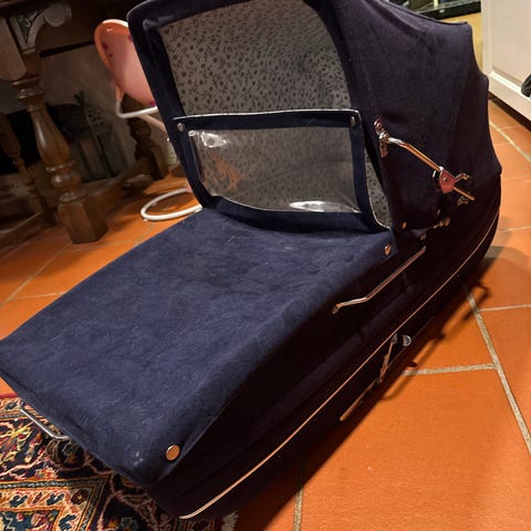 Selger en Simo barnevogn fra 1976. Kjøpt den brukt på Finn for noen år tilbake. Vi har oppbevart den innendørs og bare brukt den til sovevogn på sommeren. Den er synlig brukt men i god stand. I semsket skinn. Det er en rift i overtrekket, se bilde.