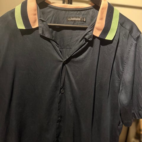 J. Lindeberg Flerfarget Lyocell skjorte i herrestørrelse M. Skjorten har kort erme og et mønster i flere farger. Laget av lyocell materiale som gir en myk og behagelig følelse.