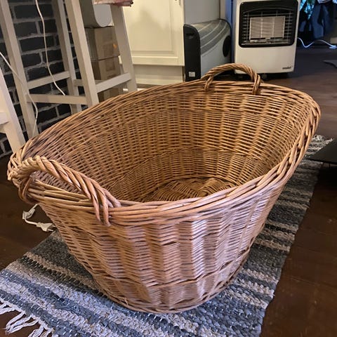 Dette er en veldig fin kurv som jeg har brukt til oppbevaring av pledd og er veldig glad i , men selger fordi plassen er blitt mindre .