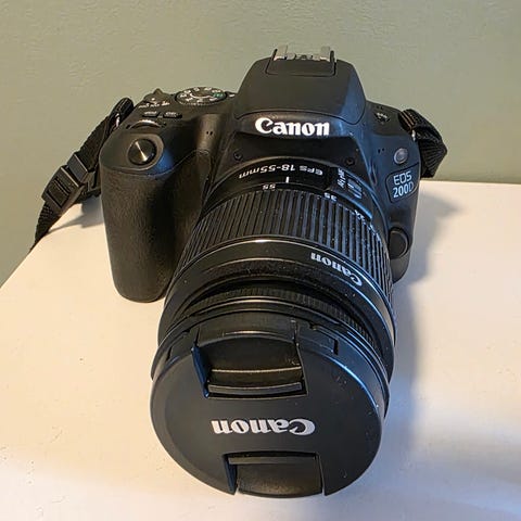 Canon speilreflekskamera med standardobjektiv. Kameraet leveres med batterilader, minnekort og kameraveske. Passer til fotografering i ulike situasjoner med mulighet for manuelle innstillinger.