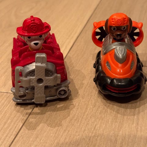 Paw Patrol figurer og kjøretøy inkludert tre figurer og tre kjøretøy i ulike farger og design. Passer for barn som liker lek med karakterer fra Paw Patrol-serien.