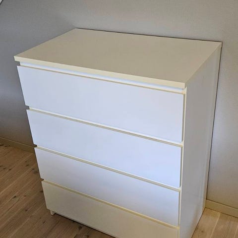 Hel og fin kommode med kjekk størrelse, plass til mye i de ulike skuffene.