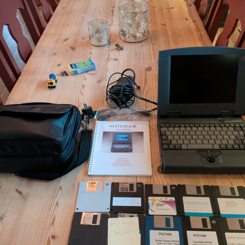 Plus har intakt batteri plassert på baksiden av maskinen. Harddisken er formatert på nytt og klargjort som oppstartdiskett