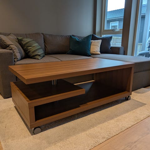 Sofabordet har noen små synlige riper, men er ellers fint. Må hentes. Hund i hus, allergivennlig rase, men kanskje uansett viktig for kjøpere.