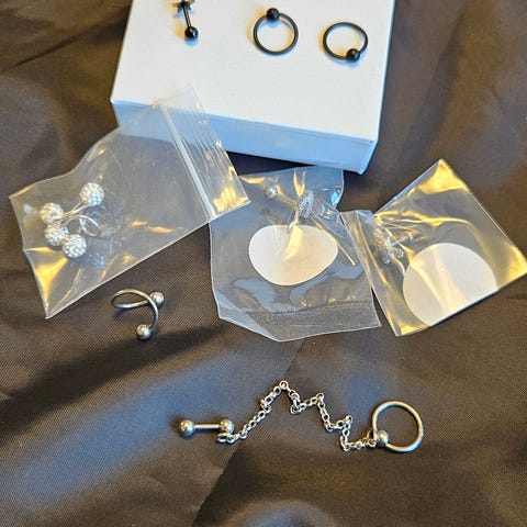 Piercingsmykke spike, kan f.eks brukes til helix piercing. Ikke tatt ut av sterilisert pose.