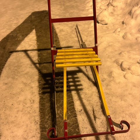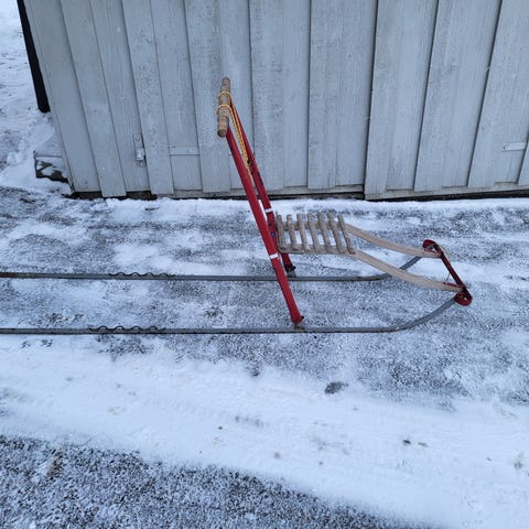 Rapp spark laget av tre og metall. Usikker på alder men tror den er kjøpt på 90 tallet. Høyde 81cm