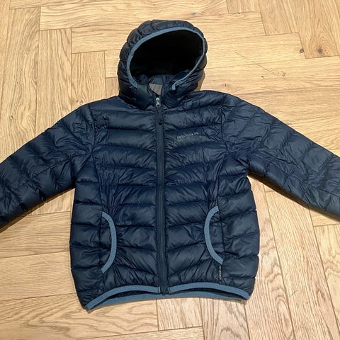 God jakke i nylon og polyester, har et lite hull i ryggen som er lappet.