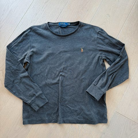 Ralph Lauren Merinoull genser i størrelse S for herre. Genseren er grå og laget av merinoull, noe som gir god isolasjon og komfort.