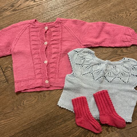 Hjemmestrikket jakke-/kåpe til jente i lilla farger selges kr. 250,- Minimalt brukt; som ny 😊
