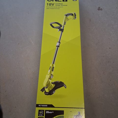 Ryobi RY18GLXA-0 gressklipper batteridrevet med avtagbar trimmerhode og justerbar stang. Leveres med batteri og lader. Klipper som ny.