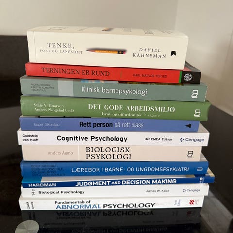 Selger helt nye bøker fra psykologifaget. Ingen markeringer.