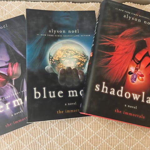 Alyson Noël The Immortals Romaner, inkludert titlene Blue Moon, Shadowland og Dark Flame. Bøkene er skrevet på engelsk og er del av en serie innen sjangeren fantasy og ungdomslitteratur.