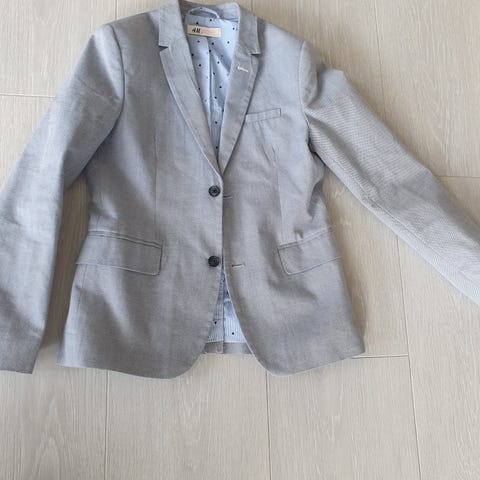 Pent brukt dressjakke og bukse fra Nameit str 152 selges. Fargen er mer dempet mørkblå enn hva bildene tilsier. Buksa har strikk i livet. Selges samlet.